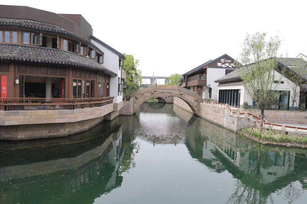 如今,蟠龙天地商业区融合了传统和现代风格,呈现三种不同类型的设计策略。有的是“古建筑原貌”,即完整保护保留原有建筑风貌;有的是“古建筑形态+新立面设计”,即保留风貌特色,融入现代建筑材料进行修缮;有的则是“新建筑”,运用新的建筑形态,突出新建建筑风格。在蟠龙天地,人们既能看到古朴的石拱桥,也能看到屋顶设计如翻开的书页般的酒店餐厅,还能看到飞檐斗拱的星巴克、奶茶店。