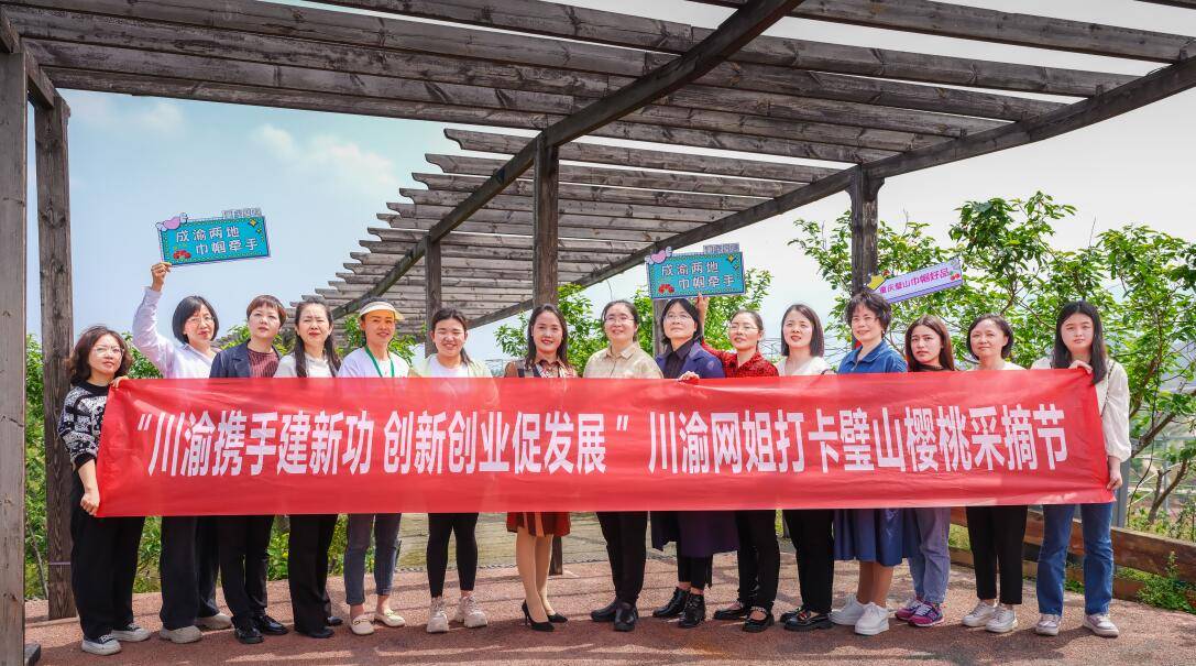 为助力双城经济圈建设,重庆璧山区妇联与成都青羊区妇联联手组织了十来位来自成渝地区的女性直播达人打卡本次采摘节,积极助推乡村振兴及消费拉动活动。在开幕式现场以及樱桃地里,随处可见直播网姐们的身影,吸引百万人涌入到直播间打卡。