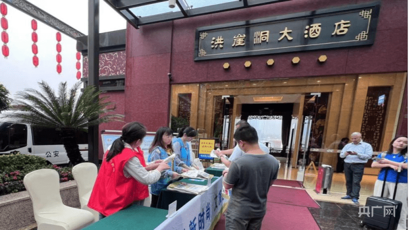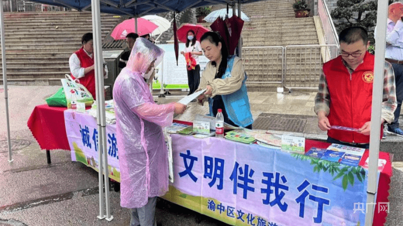 4月18日,重庆市渝中区文旅委联合渝中区发改委、解放碑街道、朝天门街道,在长江索道、洪崖洞大酒店开展文明旅游、诚信旅游宣传活动,以此增强市民、游客的文明旅游意识。