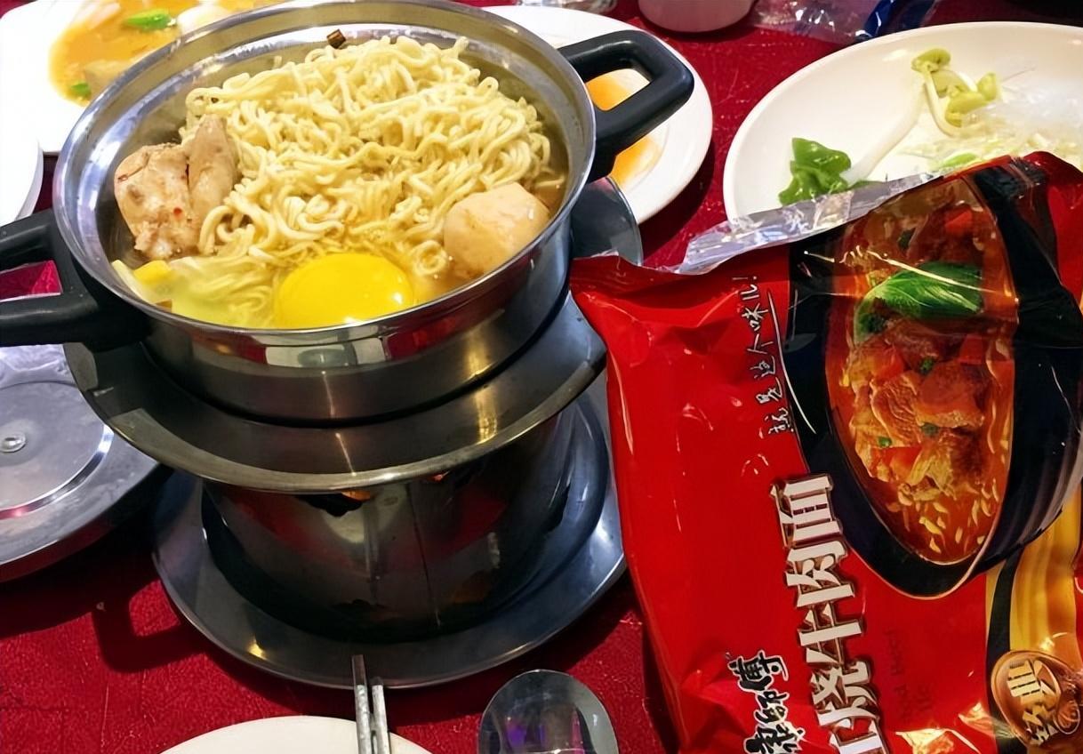 朝鲜人吃火锅还有这样一个爱好,就是在火锅中放入方便面。我看了一眼方便面的袋子,居然是康师傅的。不过,在朝鲜吃过也有有趣的事情,那就是我们在吃火锅的时候,有漂亮的朝鲜姑娘给我们表演节目。