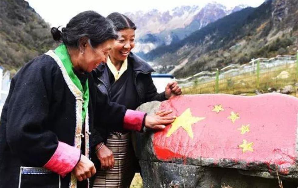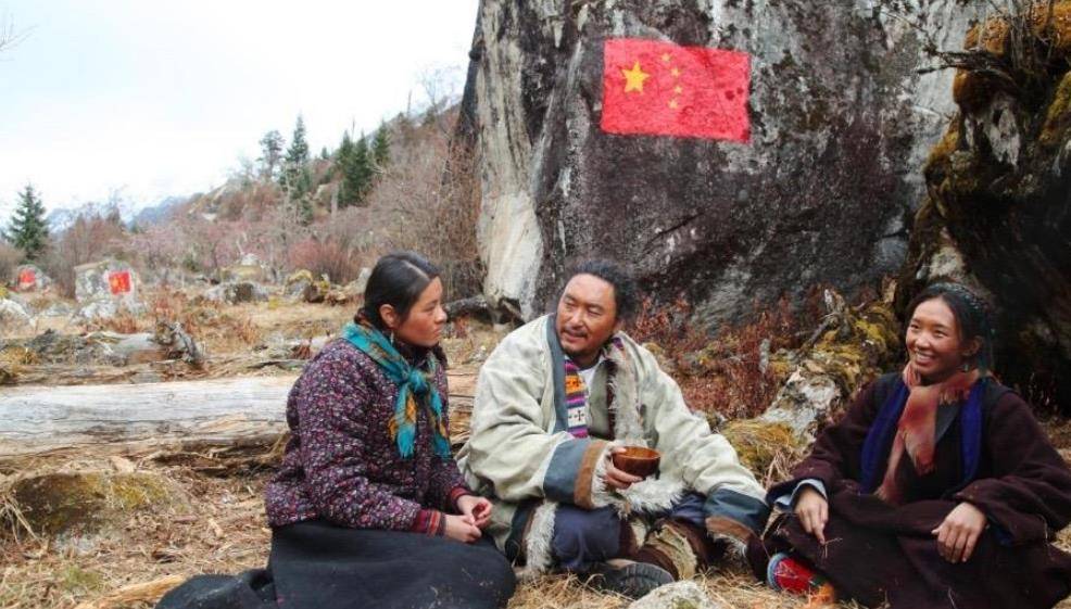 从此,桑杰曲巴只要去放牧,身上一定会背着几样东西,中国国旗,红色和黄色的颜料。
