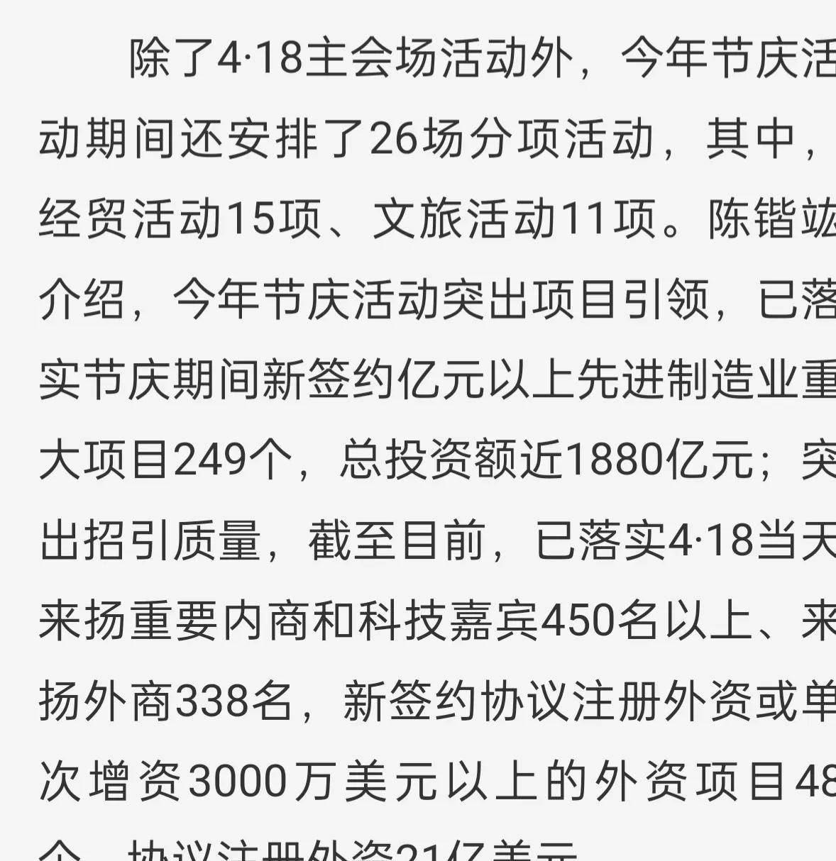 扬州人以花为媒招商引资,节庆期间将签约249个重大项目,总投资达1880亿元。这也是扬州不仅有旅游,更有工业的所在。如果只发展旅游,扬州也不可能去年gdp达到了7000多亿元。