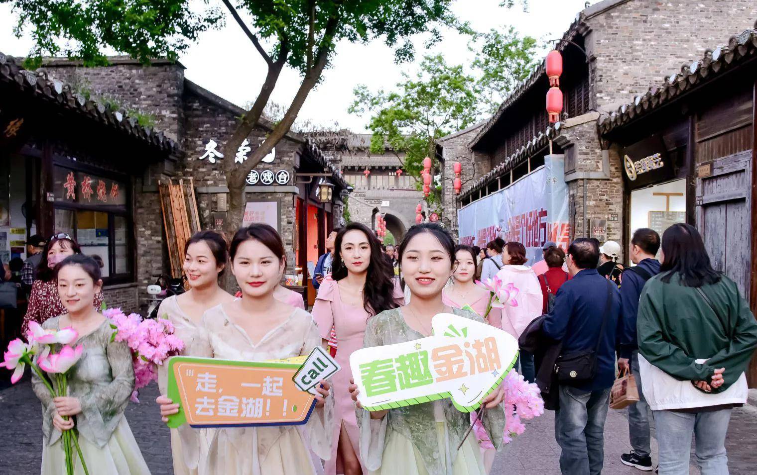扬州人也喜欢美美与共,周围淮安金湖县的小姐姐以扬州为舞台,推广金湖旅游。