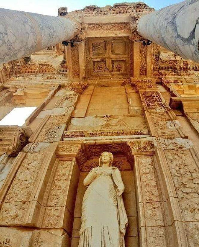以弗所塞尔苏斯图书馆,它建于公元117年,用来存放大约12000卷卷轴,并作为提比略·朱利叶斯·塞尔苏斯·波莱马阿纳斯(罗马以弗所总督)的陵墓。
