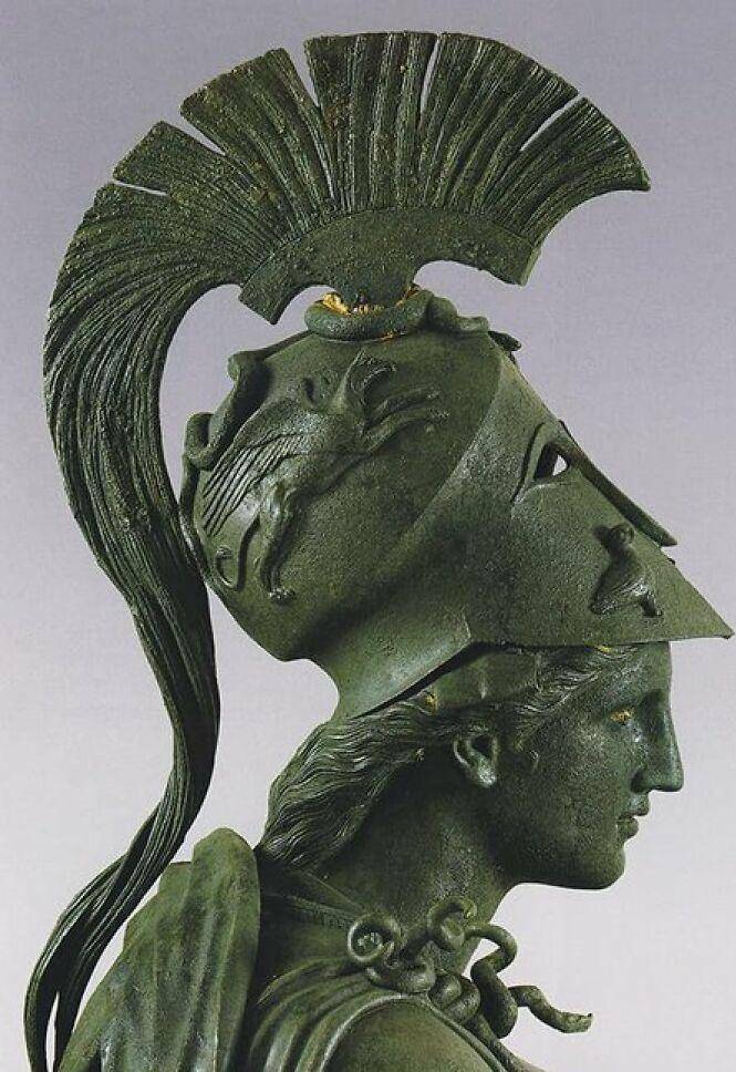 雅典娜雕像(“雅典娜女神”)。中等:青铜色。日期:公元前340—330年。雅典,比雷埃夫斯考古博物馆