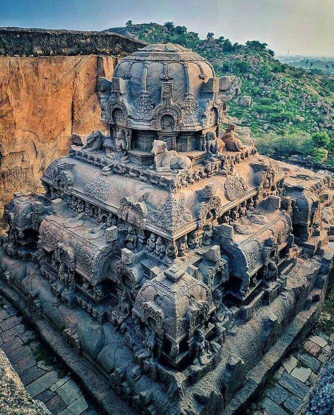 印度凯拉萨神庙是世界上最大的整体艺术品,工匠大师在山腰的一个洞穴里用一块坚固的岩石雕刻出这个巨大的结构。整个建筑花了20多年的时间来雕刻。