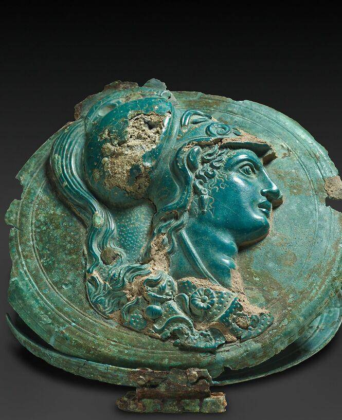 公元前330年至公元前270年,希腊,雅典娜头像的盒式镜子