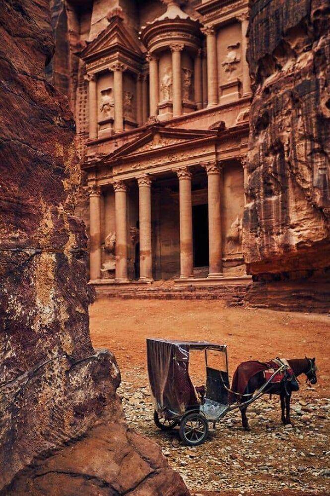 这座被称为金库的建筑是佩特拉的一系列建筑之一,由纳巴泰人建造,他们信奉异教,与赛莫德人有着密切的联系。他们以雕刻岩石的精湛技艺而闻名