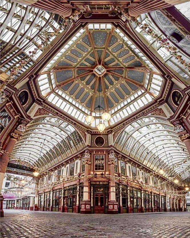 英国伦敦格雷斯彻奇街14世纪利登霍尔市场,这是一个有屋顶的市场,也是伦敦最古老的市场之一,位于伦敦金融区的历史中心。