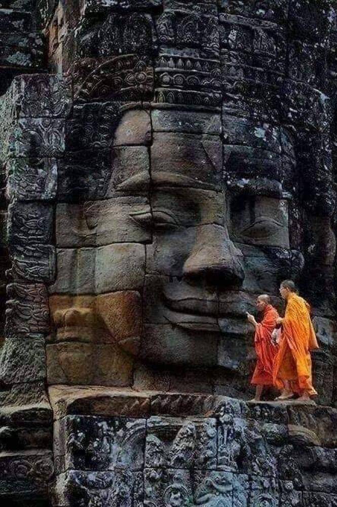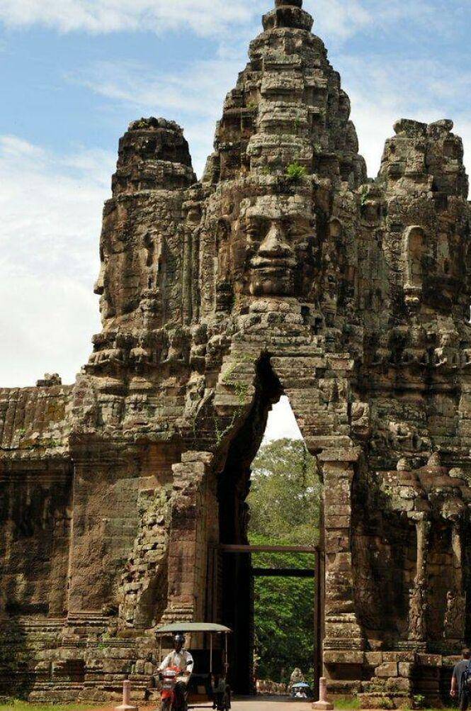 巴戎寺建筑群的北门,有四张巨大的脸。柬埔寨,高棉帝国,12-13世纪