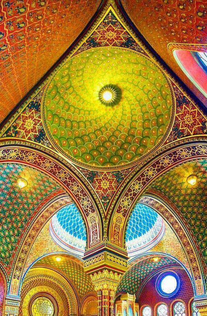 西班牙犹太教堂,建于1868年,在12世纪的布拉格旧址上为当地的改革派会众而建,是布拉格犹太区最古老的犹太教堂。