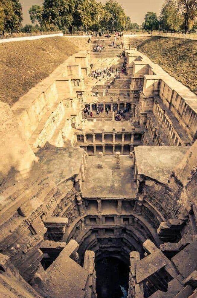 阶梯井是印度次大陆上一种独特形式的地下水资源和储存系统,从公元前3000年开始建造。随着时间的推移,它们从沙质土壤中的一个土坑发展成为精致的多层艺术和建筑作品。,最初是为了纪念公元11世纪的一位国王而建造的