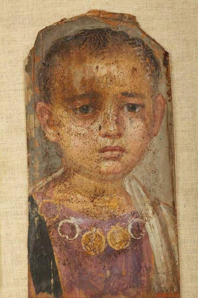 公元前1世纪,埃及哈瓦拉的一个小女孩的肖像。与德莫斯的木乃伊一起被发现,她可能是孩子的母亲。开罗埃及博物馆