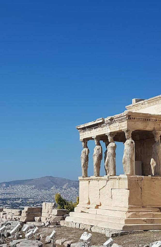 希腊雅典,女像柱是一个雕刻的女性雕像,被用作柱子,作为建筑的支撑。希腊术语Karyatides字面上来自伯罗奔尼撒半岛的一个古镇,意思是“卡亚伊的女儿”