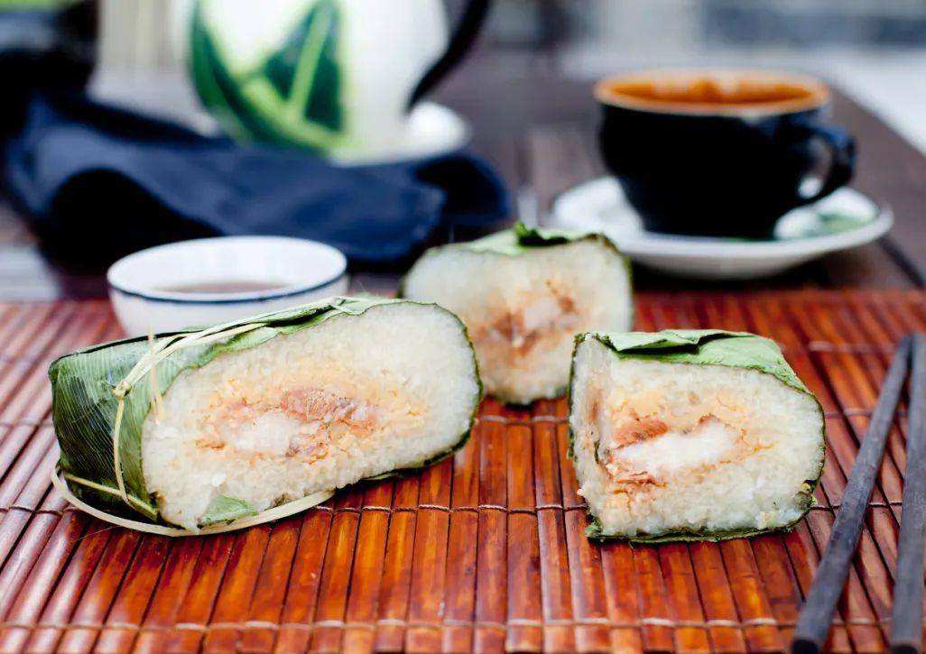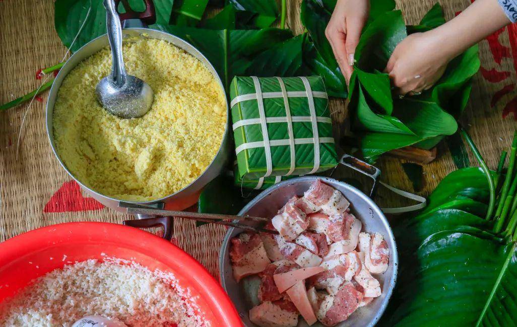 黏米或糯米(白色、红色和黑色)和干豆或泡过的干玉米、花生和芝麻混合在一起,就做成了一种叫作xoi(越南中部称作ngo)的丰盛又美味的早餐。它还可以和糖以及椰奶混合在一起,再用模具压成甜食,或是和猪肉分层放置,在竹筒或芭蕉叶上一起蒸,做成banh chung—一种越南春节的特别点心。