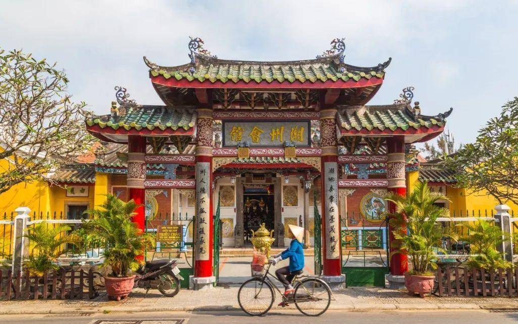 会安古城有不少会馆。福建会馆是其中最著名的,这座建筑原本是一座传统的会馆,后来变成了祭祀天后(即妈祖)的庙宇。绿瓦盖顶的三重门始建于1975年。右面墙上的壁画描绘了妈祖天后掠过波涛汹涌的海面营救一艘即将沉没的船只,一只灯笼在她的前方照路。对面墙上的壁画画着17世纪从中国来到会安的6位福建家族族长的头像。