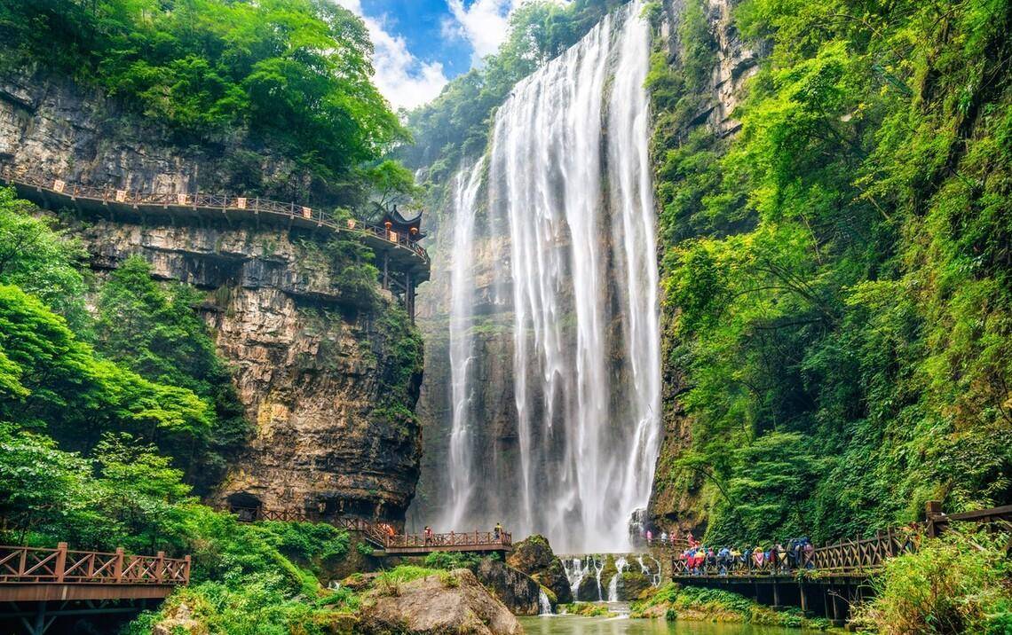 三峡大瀑布,中华十大名瀑之一,有着山清水秀、洞奇瀑美的自然风光,好山好水好风光,景色宜人,是天然的大氧吧,游走在青山绿水间,观瀑布飞虹,享清幽自然,收获内心的安然与宁静。