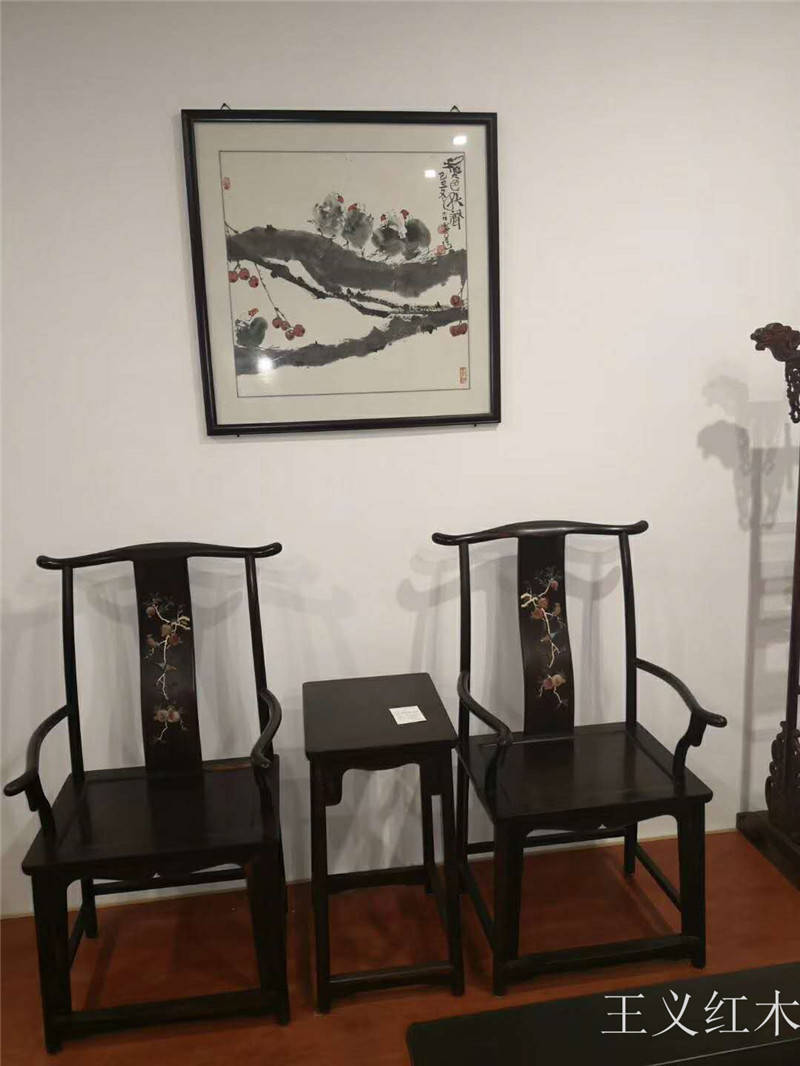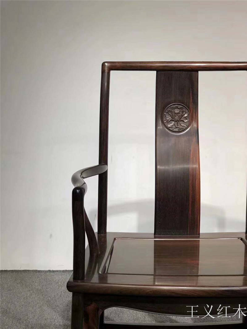 老挝大红酸枝官帽椅非常精美,赏心悦目。