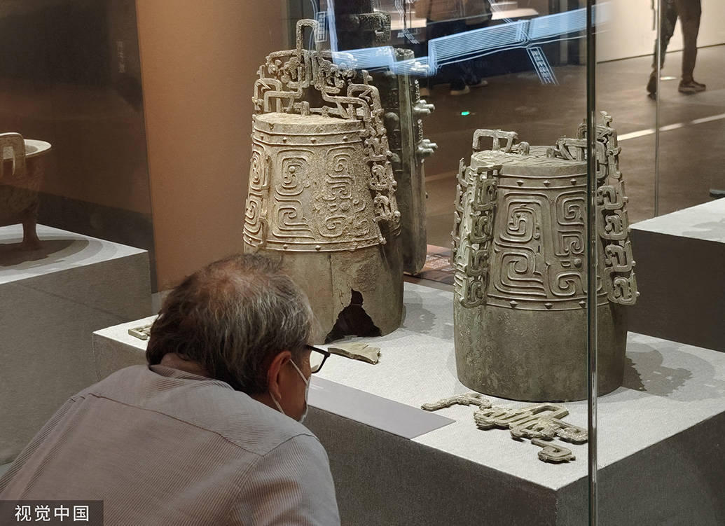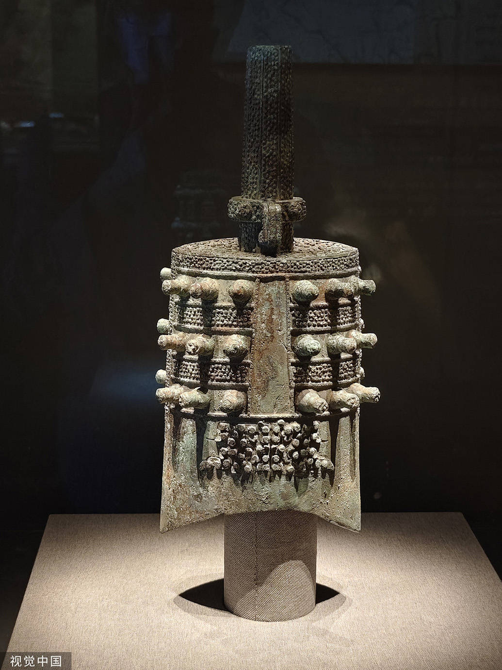 2023年4月18日,武汉,湖北省博物馆,惟见长江天际流——考古中国·长江中游文明进程研究成果展。“穆穆曾侯”铜甬钟,随州文峰塔4号墓出土,随州市博物馆藏。