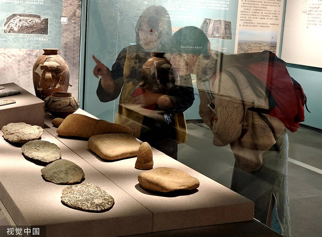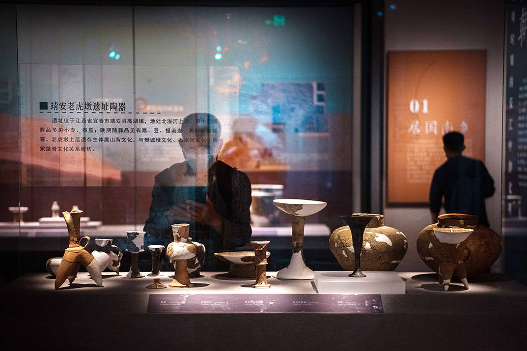 2023年4月18日,武汉,湖北省博物馆,惟见长江天际流——考古中国·长江中游文明进程研究成果展,市民参观展览。