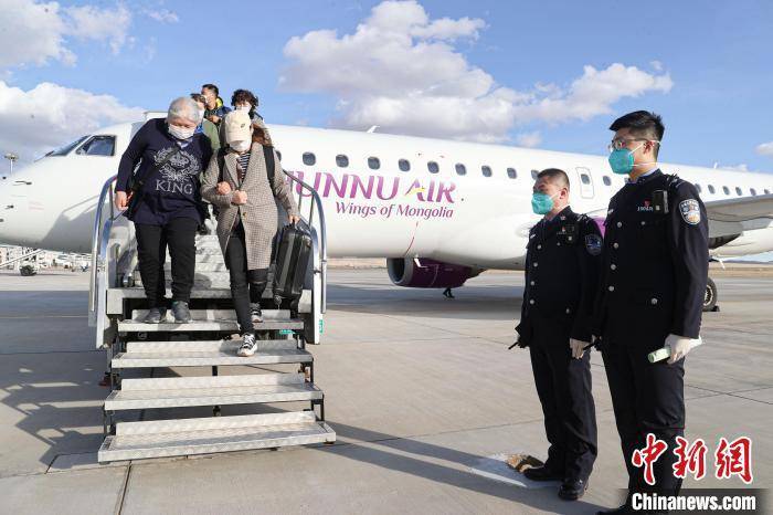 图为外国游客乘机抵达满洲里。 李发春 摄