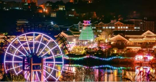 贵州丹寨万达旅游小镇,位置在贵州省黔东南苗族侗族自治州的丹寨县东湖湖畔,这里是万达以苗、侗族两大少数民族建筑为特点而建造的以非物质文化遗产的保护、传承、体验相结合的产、城、景、文、旅、商高度融合的文化旅游小镇,其独具特色,让人流连忘返。贵州丹寨万达旅游小镇全长1.5公里,总体建筑面积已然超过5万平方米, 该地有3条文化旅游商街以及4大民族文化广场,同时还引入了17项省级非遗项目,真可谓聚集了丹寨非遗之精华。