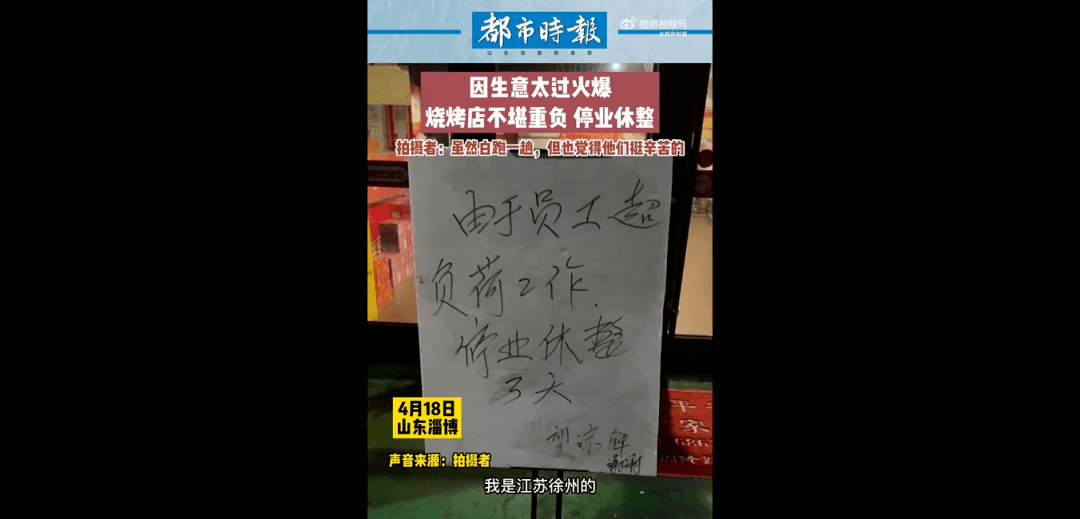 就连近日爆火的淄博烧烤,也有店老板因长达一个多月的超负荷工作,为求“保命”,不得不挂牌停业三天。
