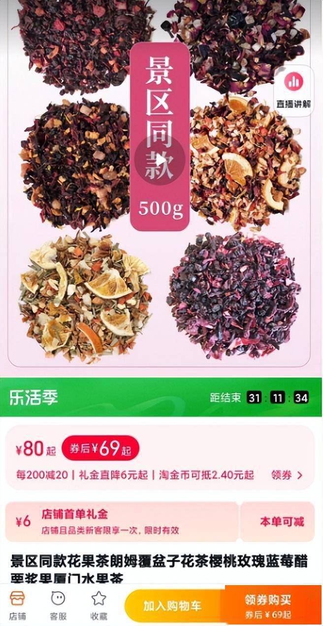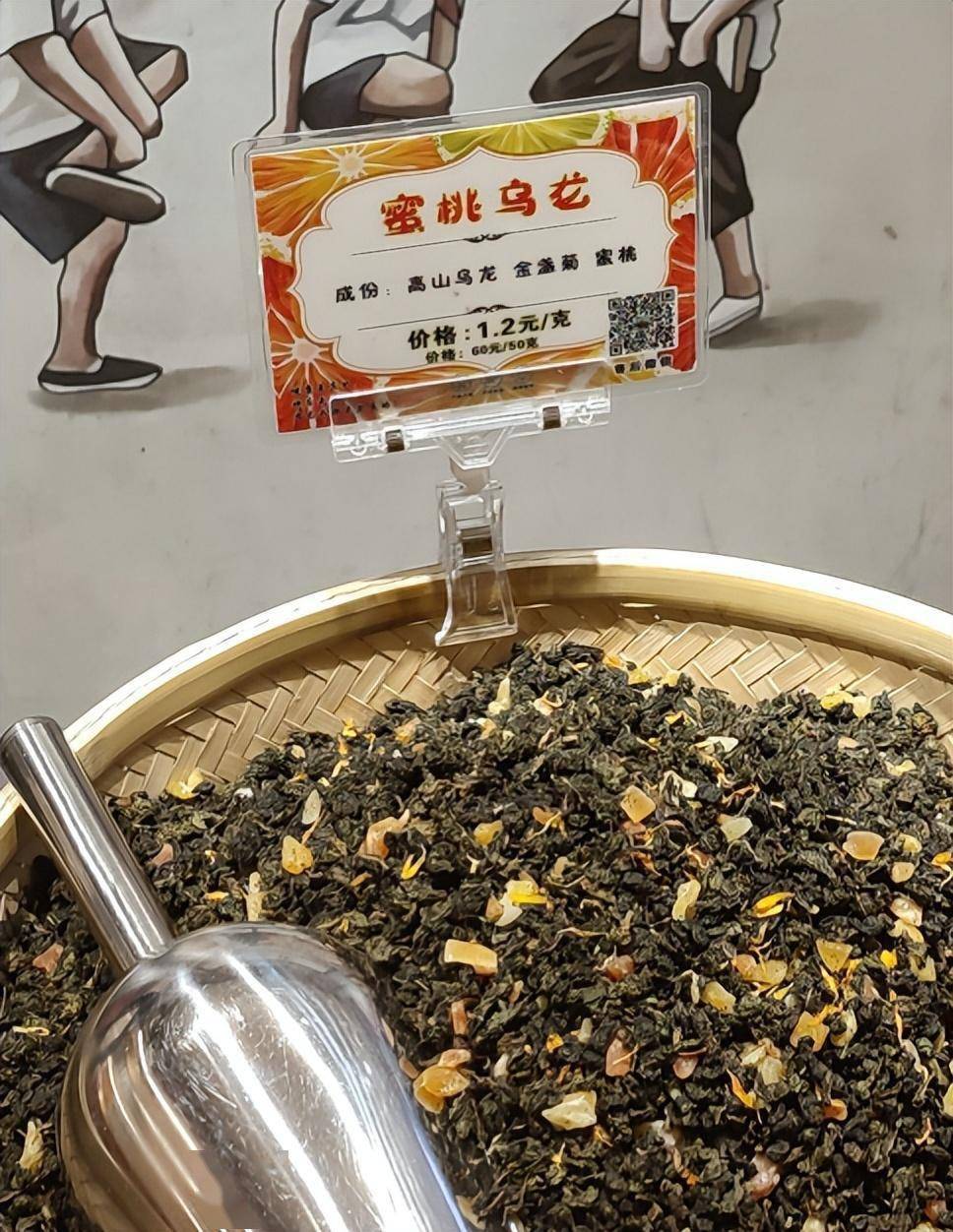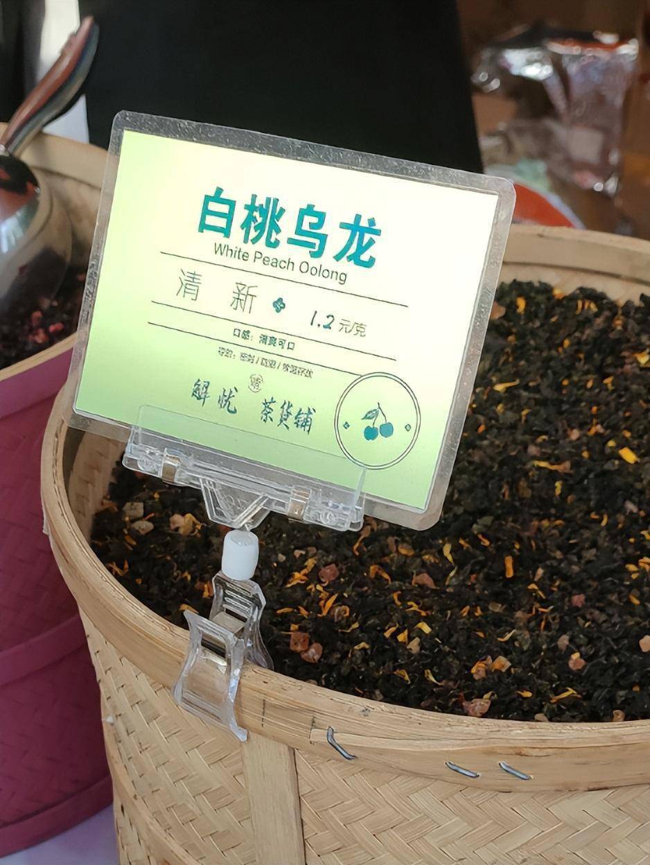 在售的花果茶大约有五六种,都盛在竹篾编制的筐内,成分多是水果干、鲜花干、茶叶等。然后根据不同的成分起了不同的名称,如蜜桃乌龙、樱桃玫瑰等。重点是商品价签上的1.2元/克。记者在店里站了一会儿,发现前来品尝和购买的游客不少。游客们多数沉浸于花果香气和味道,有的会问一句价格,有的只扫一眼价签。店员一铲子下去,然后麻利地装袋、称重。