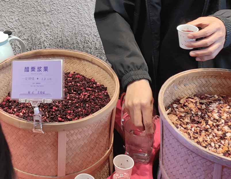 “大哥,来尝一尝,刚泡的,祛燥祛湿。”“来大姐,别走,喝一杯,美容养颜。”