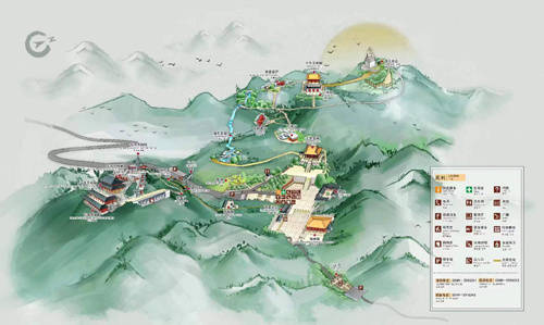 清凉山生态旅游区手绘地图青山环抱,绿水荡漾,梵音袅袅无问东西!