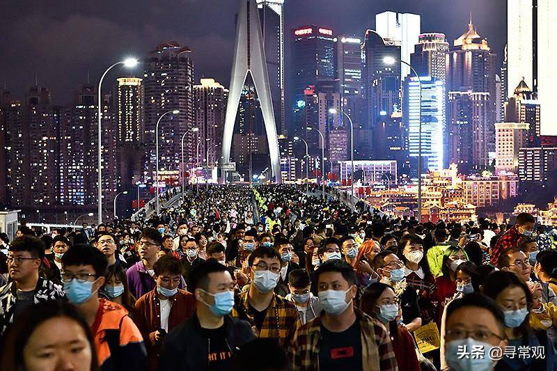 国庆节期间千厮门嘉陵江大桥上的游人,摄影|寻常