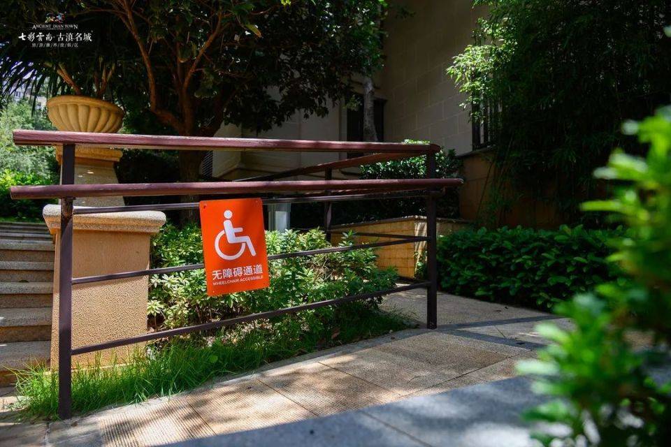 古滇康养园充分考虑长者生活特点,公共空间均采用适老化设计:所有公共过道均采用防滑地砖设计,公寓区出入口、走廊等区域除设置台阶之外,还设有轮椅坡道和扶手,方便长者上下楼梯。