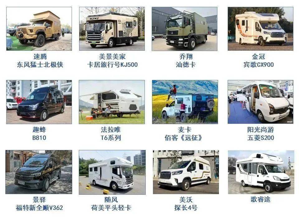上汽大通MAXUS、隆翠、戴德、宇通、青杉、冠林、柯铃通、瑞弗、亚特、卓美亚、览众、齐星、福客特、舜宇、威尔特芬、飞翔、爱旅途、途酷、速腾、美景美家、华辰、乔翔、金冠、勇和、趣蜂、法拉唯、麦卡、盛唐、阳光尚游、景驿、随风、轩航、美沃、博斯、加乐等主流房车品牌将带来最科技、最智能的前沿技术,打造全新出行体验。