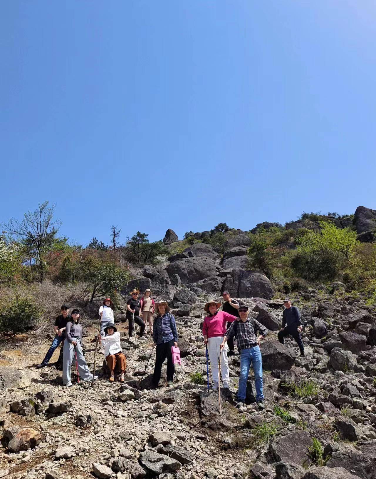 在山往林场的便民休息点起步,沿着防火隔离带一行人浩浩荡荡向着大雷山之巅出发。