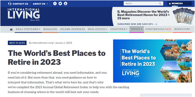 该指数考虑了住房、生活成本、签证/福利、亲和力评级、发展/治理、气候和医疗保健等因素。