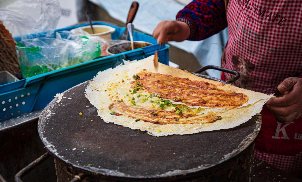 4.煎饼果子:煎饼果子是一种传统的北方小吃,青岛也有着自己独特的煎饼果子。青岛的煎饼果子通常加入豆腐皮、鸡蛋、韭菜等,味道清香可口,非常受游客喜爱。