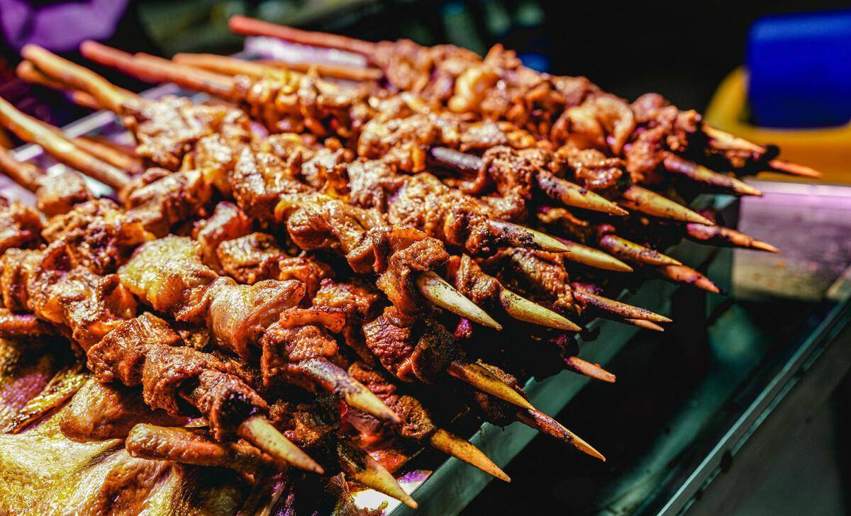 1.烤肉串:青岛的烤肉串是非常有名的,味道鲜美,价格也很实惠。烤肉串的种类非常丰富,例如羊肉串、牛肉串、鸡翅、鸡腿等。而且,每个摊位的调料都有所不同,让游客可以品尝到不同口味的烤肉串。