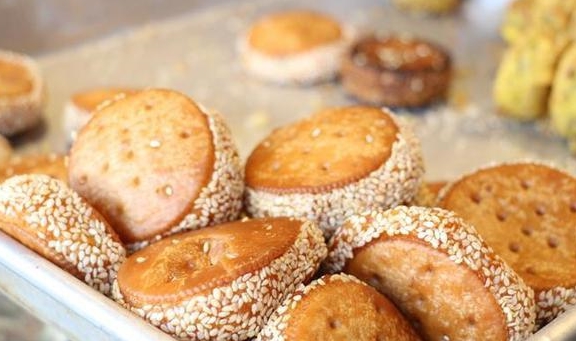 “这么多年的手艺,我难道会做不出好吃的咸烧饼。”带着糕点手艺人的自信,刘军华走上了咸烧饼制作探索之路。然而,探索的道路艰难曲折,“我最开始做出来的咸烧饼不够酥脆,口感很干。”他根据老客的反馈一点一点改良。一直改良了五六年,才完美还原到大家记忆里的那个味道。