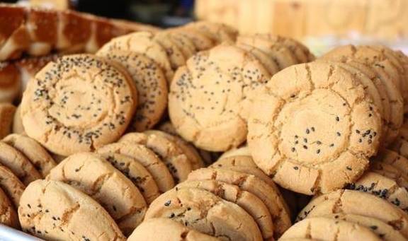 拿起一个,迫不及待地咬上一口,“咔吱”一声,酥皮在碰触牙齿的瞬间,破碎。慢慢咀嚼几下,内馅的咸香充盈整个口腔,间或咬到被烤至焦脆的花生,醇香浓郁,怎一个“香”字了得!不经意间,一枚咸烧饼已经下肚。
