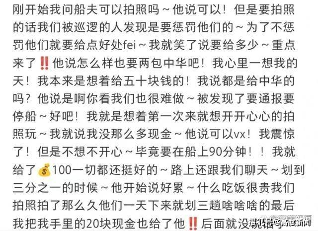 上游新闻(报料邮箱baoliaosy@163.com)记者在社交媒体上看到,最近一段时间,吐槽遇龙河竹筏漂流的乘客很多,其中最典型的案例就是撑筏的师傅主动索要小费,以及缩短项目流程。有网友透露,来遇龙河坐竹筏漂流前已经做过攻略,得知师傅可能索要小费,“本以为50块就够了,没想到的是,他说怎么也要两包中华吧!我说我没那么多现金,他说微信也可以!最后一共给了120元!”还有网友吐槽:“开始一切正常,突然划船师傅就开始各种表演,先问我们要不要拍照,明确要给小费就能脱救生衣停船拍,后来又说累了喝红牛才有劲划船,说‘反正我们不赶时间,你爱划不划’……”很多网友表示,如果要想在竹筏上摆pose拍美照,必须给师傅小费,不然他根本不会配合。