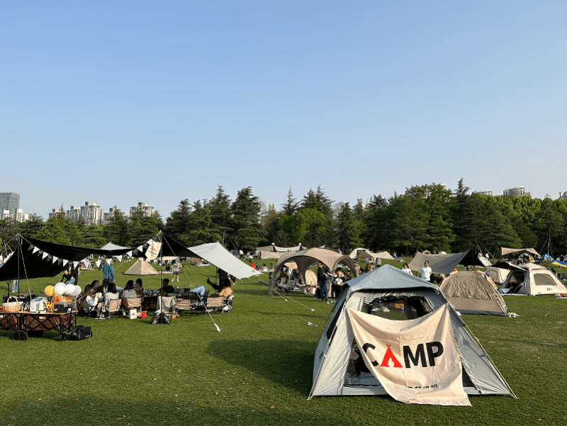 告别了疫情期间的爆发式增长,露营的热度仍在持续。每逢周末,公园里随处可见帐篷、吊床、野餐垫,其中有一起玩飞盘/棋牌的年轻人,有抱着宠物拍照的小情侣,也有带着老人小孩的大家庭,扎个帐篷在户外待上一天已成为都市打工人的社交和生活方式之一。
