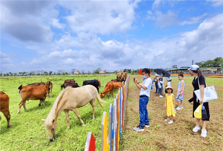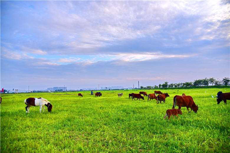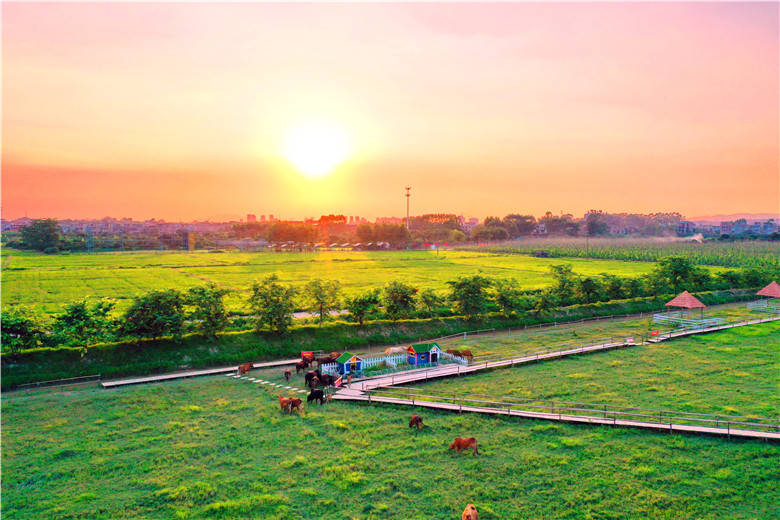 犇牛牧场是广东为数不多的教育研学牧场,拥有岭南版的草原牧场风光,芳草萋萋,风吹草低现牛羊。最美丽的时候是黄昏,夕阳洒在晚归的牛群身上,形成了一幅乡村黄昏图画。