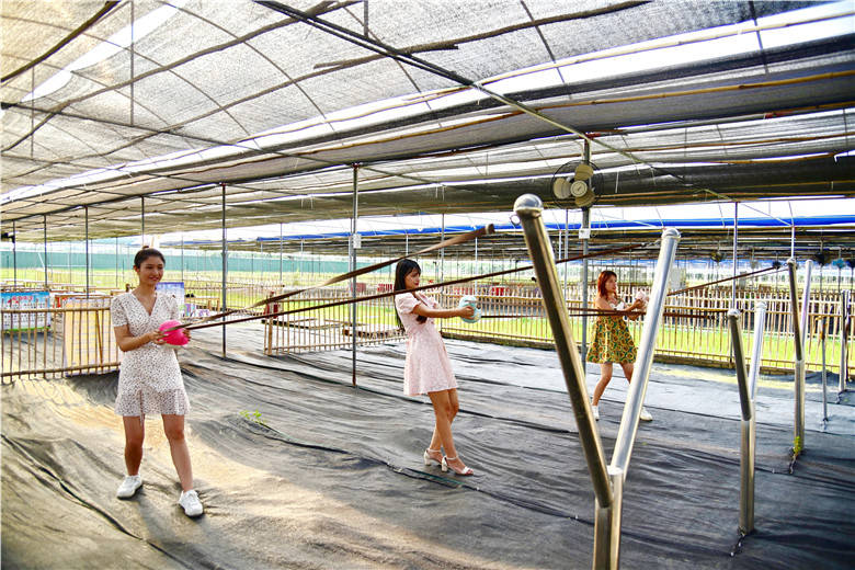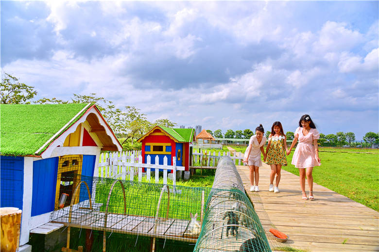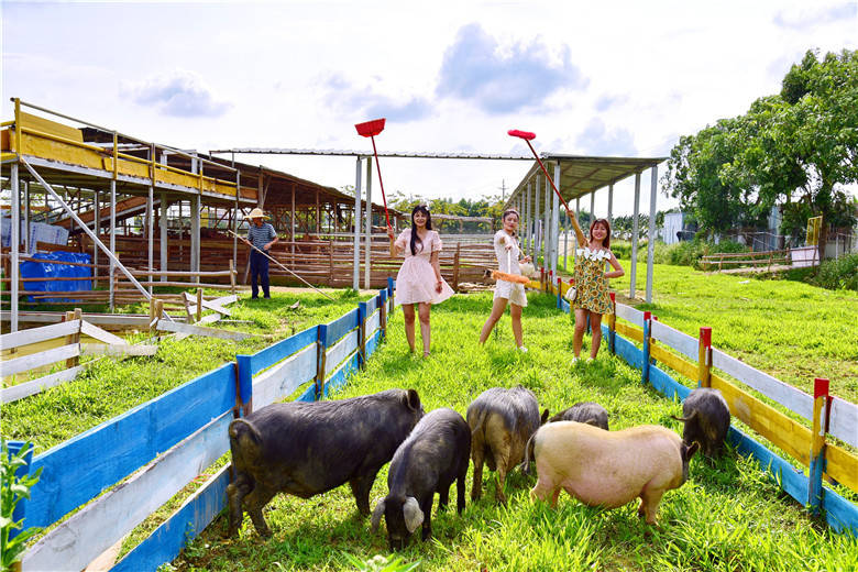 游览完六畜兴旺园,游客们可以在草地上让孩子学习体验农耕文化,将古老的农具化身为游戏,推磨磨粉,踏碓舂米,风车车谷,鸡公车交公粮,小车仔推肥料,老式单车赶集,箩筐挑稻谷,担柴挑水等,做一个农家人。