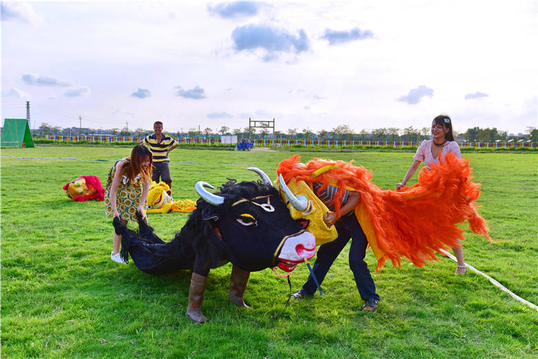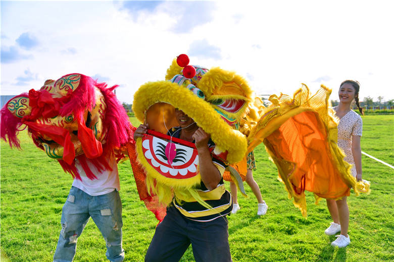 草地上还有众多乡村民间艺术,蕴含着乡村民俗,父母可以陪着孩子一起舞龙、舞狮、舞春牛、敲大鼓,学习了解春牛的习俗,一起鞭打春牛,过一个乡村民俗假期。