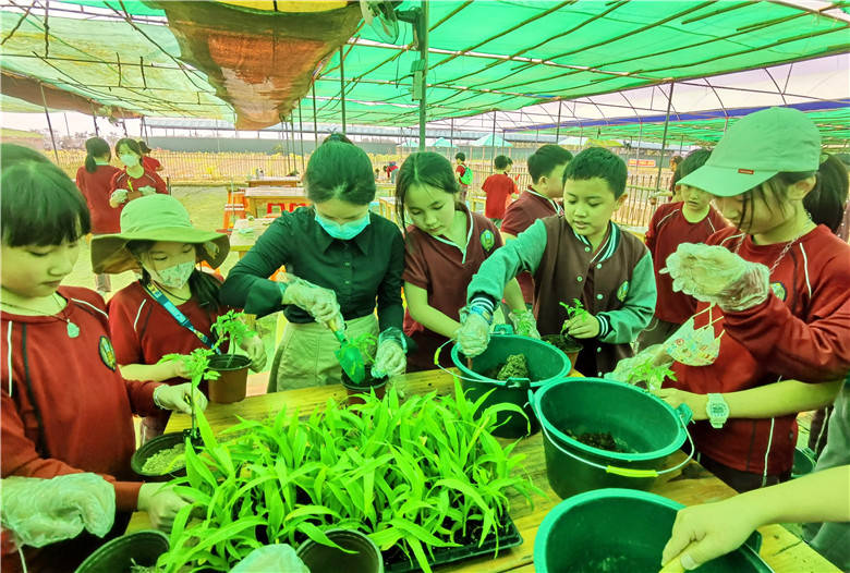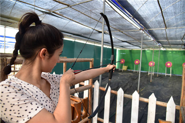 课程大棚里,孩子们可以参加体验植物拓染、蔬菜小盆栽、牛奶饼等课程。还可以玩军事小炮、射箭、投壶、投弹等项目,做一名小军人。