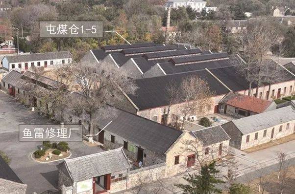 屯煤所、鱼雷修理厂建筑群位于刘公岛西南部,是北洋海军基地后勤保障设施的一部分,也是28处战争遗存之一。为驻岛军队管理的文物,包括厂房、库房、办公室等,建筑结构形式多样,功能多样,各具时代特点。两处建筑群占地面积1.92公顷,文物建筑面积4722平方米。