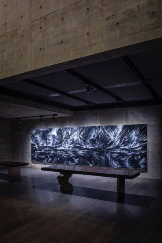 孙尧的画作中具有不容忽略的动势,令人联想到量子、星云、狂风骤雨等时时变幻且无可揣测之物。如李贺诗中“黄尘清水三山下,更变千年如走马”之意境,定格瞬间的同时延展无限,正是艺术家希望唤起的观者感受。