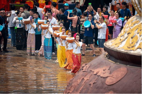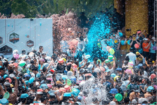 不知道是因为疫情停办3年让老百姓憋足干劲,还是因为中老铁路通车带来更多中外游客,让今年彩虹泼水节的参与氛围格外高涨。能容纳10万人的泼水广场不到中午12点就已经水泄不通。随着7名身着代表彩虹7种颜色傣装的取水少女,从红、橙、黄、绿、青、蓝、紫7个取水点盛水领泼,早已迫不及待的人群蜂拥而上,整个泼水广场瞬间成了傣族敬酒词里描述的那样:水,水,水水水,水!