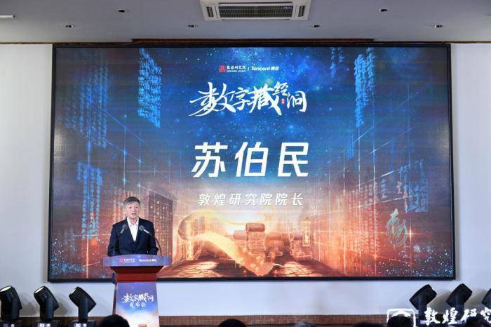 4月18日,全球首个超时空参与式博物馆“数字藏经洞”上线。图为敦煌研究院院长苏伯民致辞。 “数字藏经洞”项目组供图