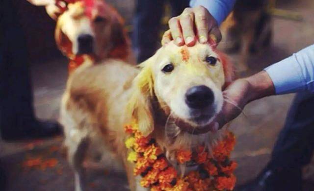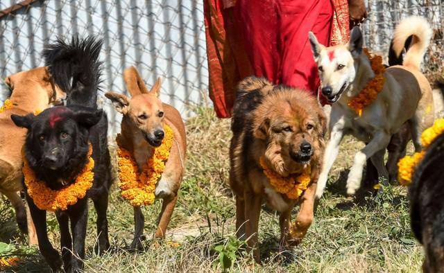 之所以要这么做,是因为尼泊尔人觉得狗狗是死神的使者,可以预知危险,甚至可以预知死亡,所以,他们对狗狗礼敬有加,觉得自己应该讨好一下狗狗,为其多准备一些美食,这样危险和死亡就不会找到自己。
